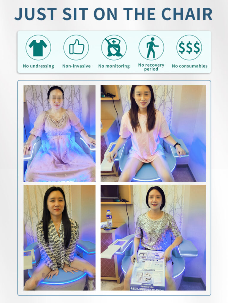 Feature:Non-invasive pelvic floor muscle repair Remain full clothed Convenient and fast For Men and Women 30 minutes equivalent to 12000 times kegel exercise